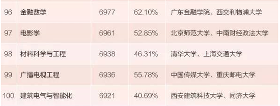 我们也发现,曾经火热的法学类、计算机类、经济学类等专业在薪酬百强榜中的表现并不突出。百强中7个外国语言文学类专业,位居前15位的就有4个。但英语没有上榜,说明英语能力已经成为了一种大众能力。